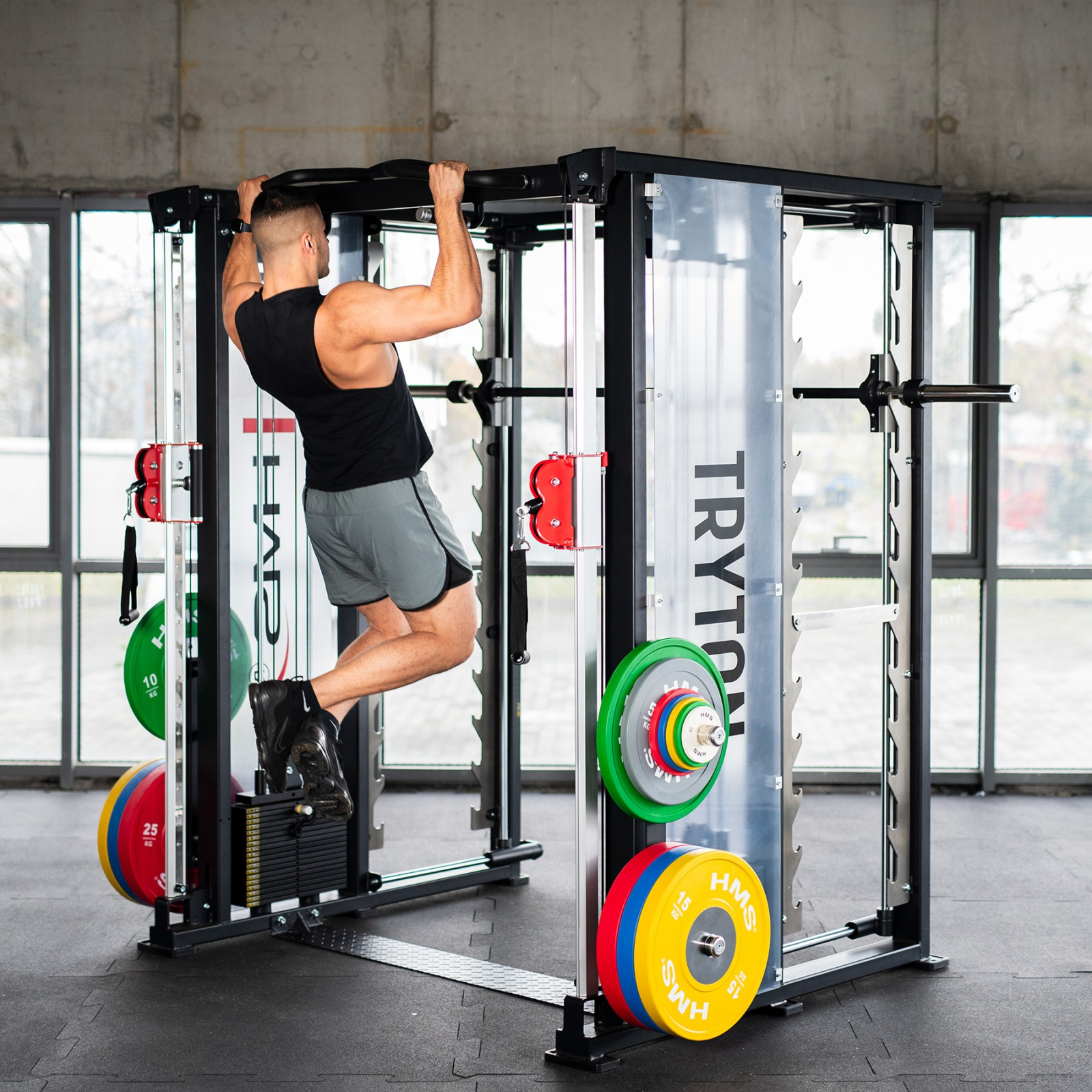 In plus, Tryton dispune de o bara de tractiuni cu o varietate de optiuni de prindere pentru antrenamente versatile pentru spate, umeri si abdomen. Patru tije de greutati permit depozitarea comoda a discurilor, pastrand zona de antrenament ordonata. Comoditatea utilizarii si solutiile practice fac din acest aparat un produs indispensabil in orice spatiu de antrenament.