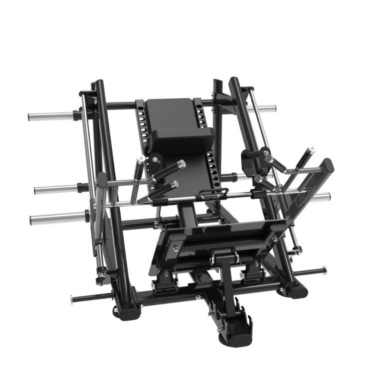 Structura aparatului este realizata din otel de calitate industriala, cu o constructie solida si durabila, ideala pentru utilizare in sali de fitness comerciale. Bara de ghidare in sistem tip Smith permite o miscare controlata, sigura si eficienta, reducand riscul de accidentare si favorizand o executie stricta a exercitiului. Platforma antiderapanta pentru picioare si spatarul ofera stabilitate si confort in timpul antrenamentului, reducand tensiunea pe zona lombara.