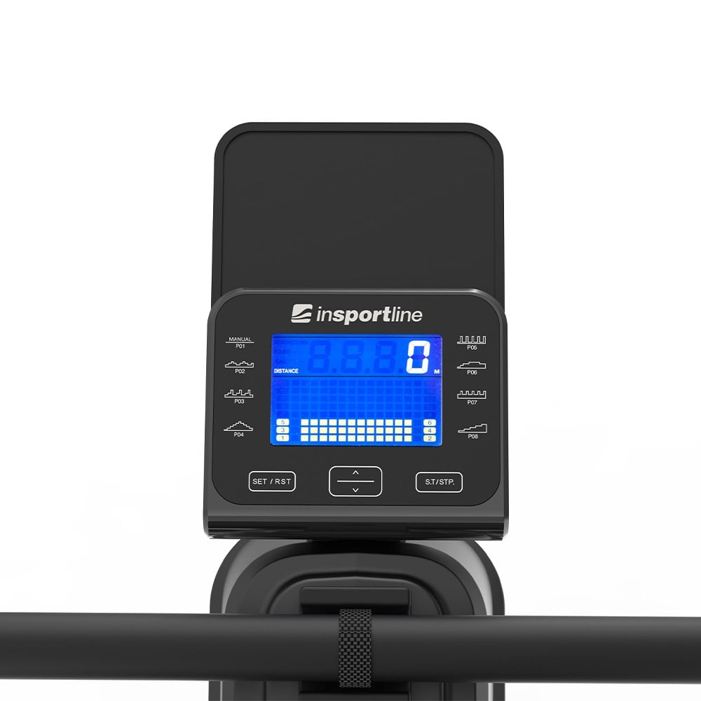Aparatul de vaslit inSPORTline Yukona este dotat cu un calculator cu ecran usor de citit pe care puteti vizualiza urmatorii parametri: timp, distanta, calorii consumate, numar de vasliri, numar vasliri pe minut, puls (masurat cu ajutorul centurii de piept incluse). Puteti alege intre 21 programe de antrenament: (15 programe presetate, 4 programe utilizator), program HRC(exercitiu bazat pe ritmul cardiac), sau program manual. Toate aceste caracteristici recomanda Aparatul de vaslit inSPORTline Yukona pentru sala dvs. de fitness de acasa.