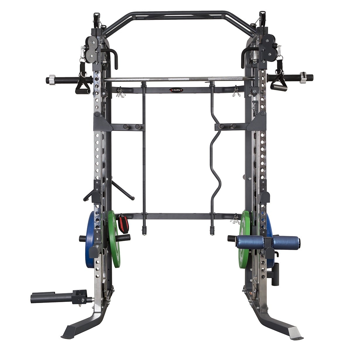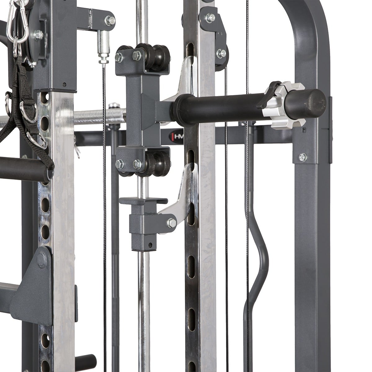 Aparatul multifunctional HMS CYKLOP 1 este realizat din materiale de calitate, care garanteaza siguranta, stabilitate si confort in timpul antrenamentului. Suportul pentru haltera este foarte silentios, iar rulmentii liniari din mecanismul sau garanteaza o fluiditate perfecta a miscarilor. Forma sa ergonomica va va permite sa alegeti pozitia optima pentru exercitii. Rolele scripetelor se rotesc odata cu miscarea exercitiului, ceea ce face exercitiul mai lin si mai natural.