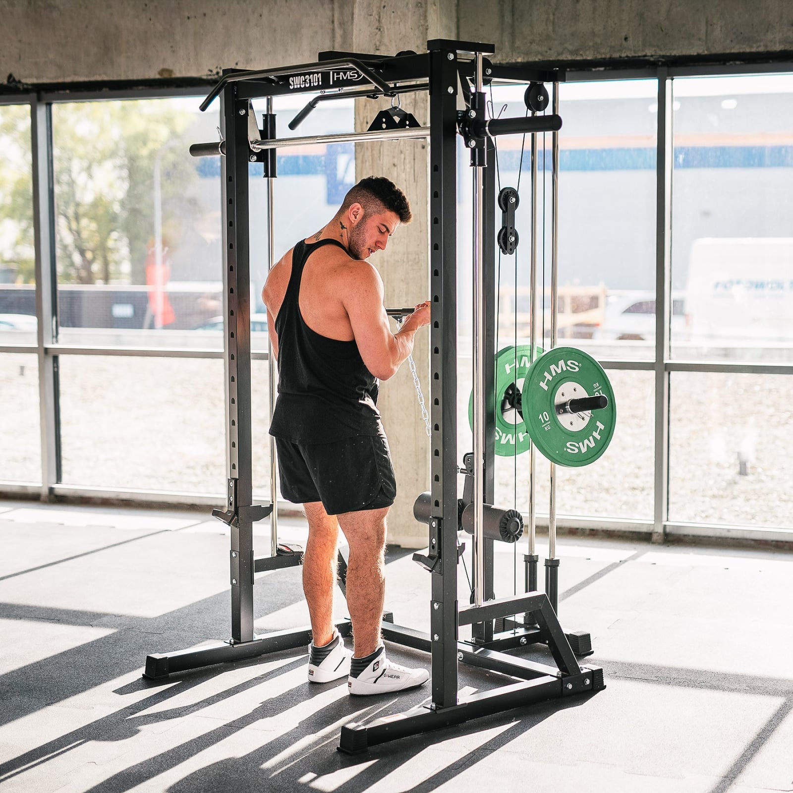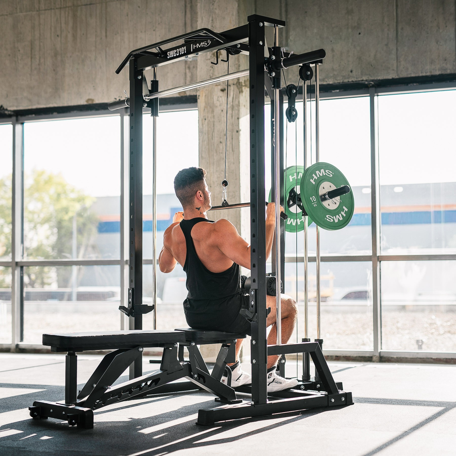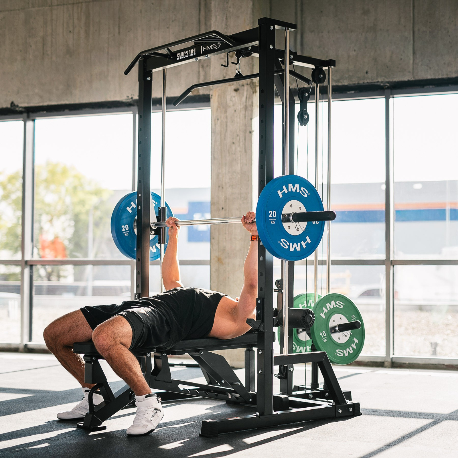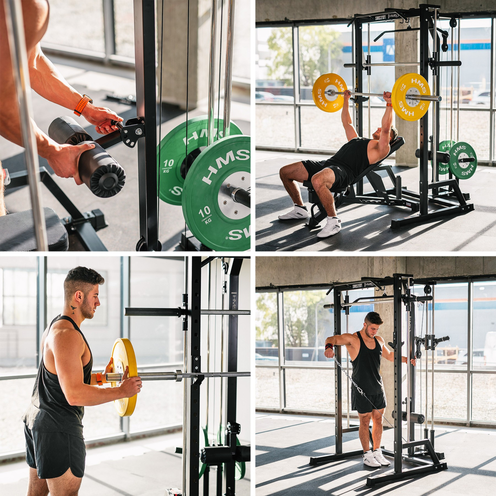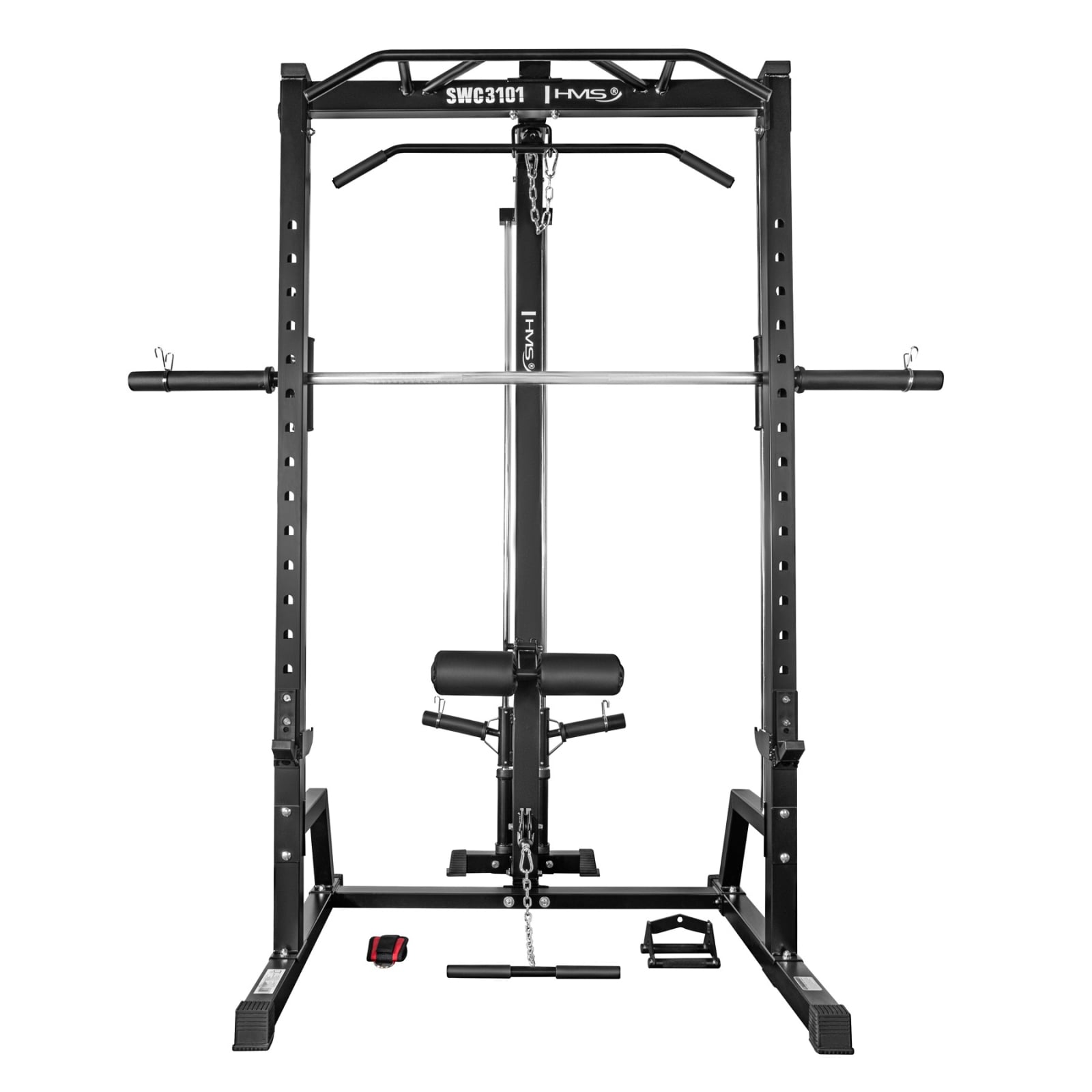 Prin combinarea unui Smith Machine, a unui rack de antrenament si a unui sistem de scripeti cu raport 1:1 si greutati libere, SWC3101 de la HMS Fitness reprezinta o platforma completa pentru antrenamente de forta si functionale. Este o investitie in durabilitate, siguranta si versatilitate maxima.