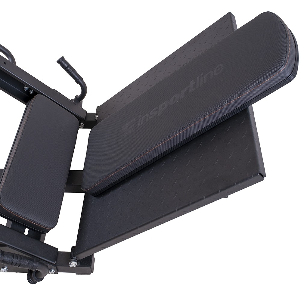 Daca doriti sa faceti presa pentru picioare, tot ce trebuie sa faceti este sa desfaceti suportul pentru spate pe sina si sa il fixati pe loc. Ceea ce veti obtine este o platforma robusta, cu o suprafata anti-alunecare, care ofera un sprijin fiabil pentru picioare. In plus, platforma inferioara poate fi reglata in trei pozitii diferite, permitandu-va sa gasiti o pozitie ideala pentru antrenarea coapselor.