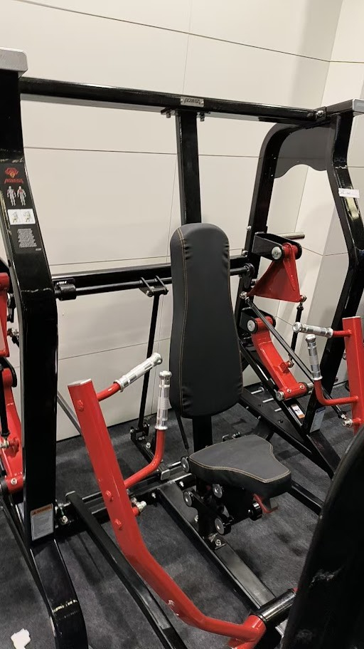 Acest aparat de presa piept este conceput pentru antrenamente intense si sigure in sali de fitness profesionale, avand un cadru solid din otel si un design atractiv in doua culori. Bratele de antrenament se misca independent, permitand o activare musculara echilibrata si un control mai precis al miscarii. Aparatul este echipat cu: 2 tije de incarcare pentru discuri olimpice pe bratele de antrenament, 2 suporturi laterale pentru depozitarea discurilor, 6 tije suplimentare in partea inferioara a cadrului pentru exercitii cu accesorii (benzi, sfori etc.). Confortul este asigurat de captuseala groasa, scaunul reglabil si cele 4 manere cromate, anti-alunecare, pentru aderenta si stabilitate in timpul antrenamentului.