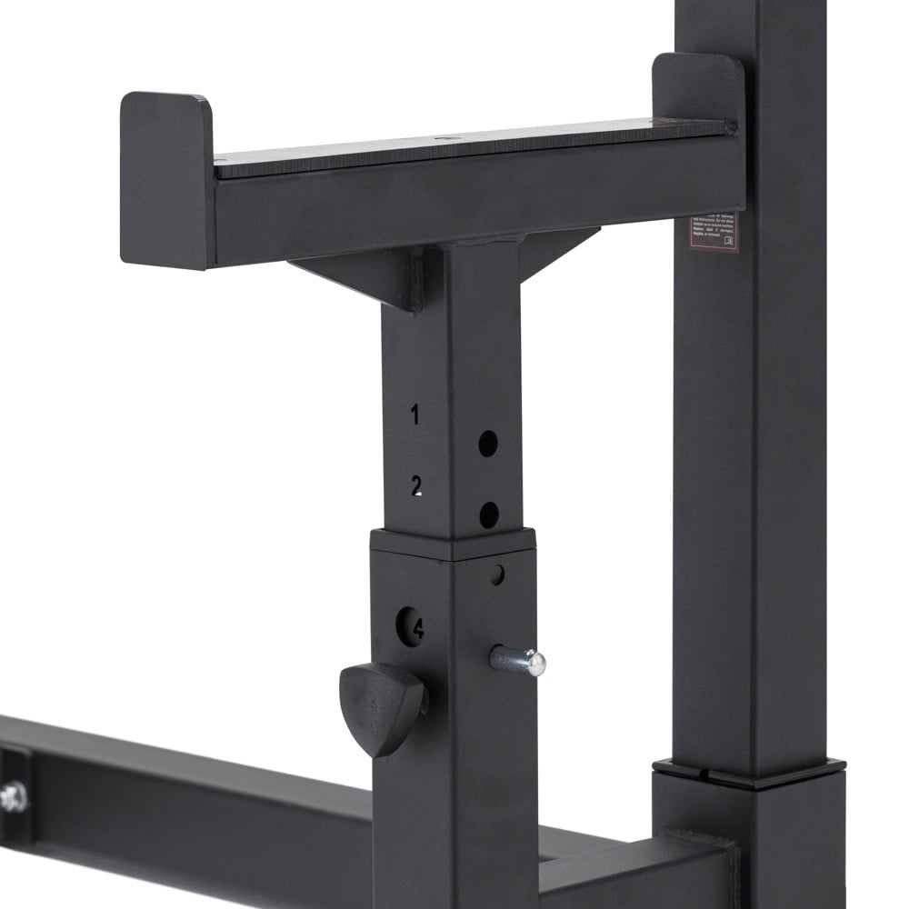Datorita inaltimii reglabile si celor 11 pozitii diferite pentru haltera, iti permite sa personalizezi antrenamentul si ofera o gama larga de utilizari. Iar prin adaugarea unei banci de antrenament, vei avea si mai multe optiuni de exercitii.