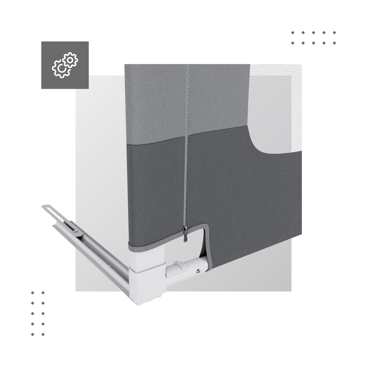 Cu 18 nivele de reglare a inaltimii, bariera de protectie Cover 48 ofera o adaptabilitate exceptionala, raspunzand ideal nevoilor in schimbare ale copilului in diferite etape ale cresterii sale. Se potriveste pe saltele cu grosimi de la 10 cm la 28 cm, astfel incat poate fi utilizata intr-o varietate de configuratii de paturi, de la modelele standard pentru copii pana la paturi de familie mai mari. Mecanismul unic care permite coborarea barierei la nivelul saltelei face mult mai usoara utilizarea patului – atat in timpul utilizarii zilnice, cat si in cazul trezirilor nocturne. Aceasta functionalitate nu doar ca imbunatateste confortul utilizarii, dar si creste siguranta, permitand o intrare si iesire mai usoara si mai sigura din pat.