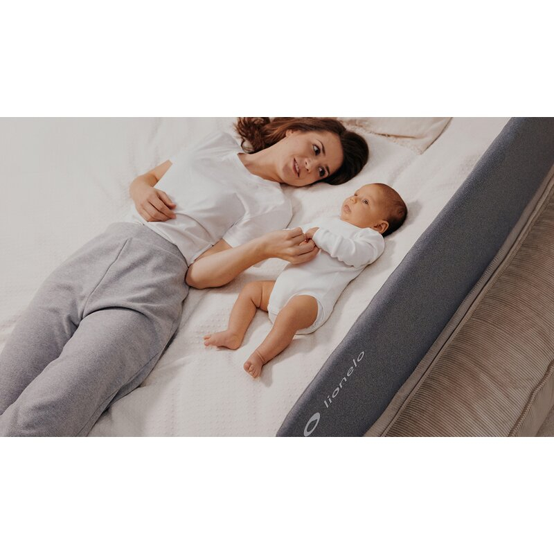 Protectie laterala pat, Lionelo, Lora, Pliabila, Sistem de blocare StandSafe, Geanta de transport inclusa, 105 x 45 cm, Bej
