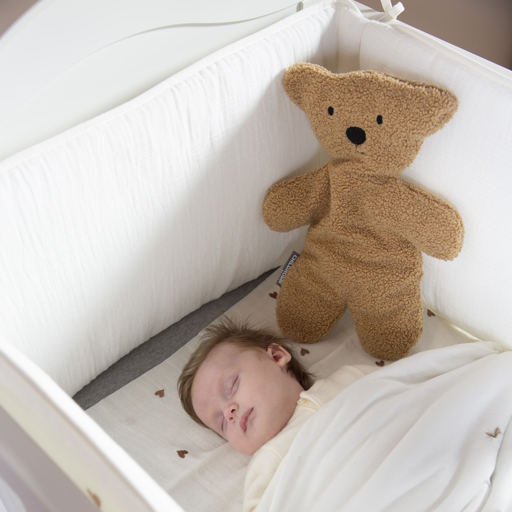 Aceasta protectie pentru patut ultra-moale de la Childhome este confectionata din jerse de inalta calitate si muselina din bumbac. Iti protejeaza micutul de partile dure ale patului, astfel bebelusul tau poate dormi in siguranta si confortabil. Protectia pentru patut Childhome poate fi folosita pe ambele parti, o parte este alba si o parte are un imprimeu dragut cu inimioare. Protectia pentru patut Childhome poate fi atasata cu usurinta de lamelele patutului.
