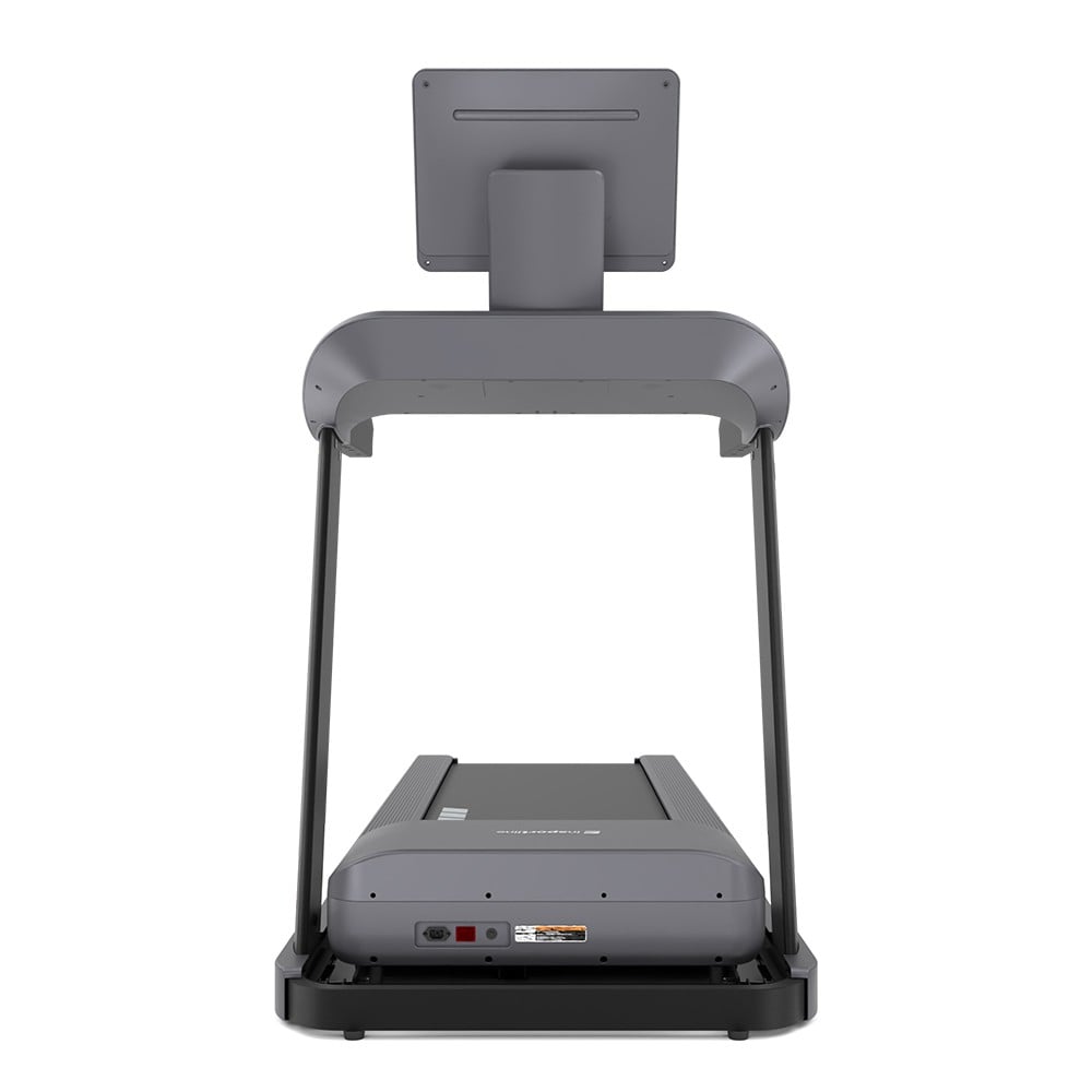 Vei fi atras imediat de ecranul tactil TFT de 15,6”, care nu doar afiseaza clar toate datele despre antrenament, ci ofera si divertisment in timpul alergarii. Aplicatiile preinstalate precum YouTube, Netflix, Spotify, Facebook, Chrome si Prime Video transforma fiecare minut petrecut pe banda intr-o experienta placuta. Desigur, banda dispune de conectivitate Bluetooth pentru casti, incarcare wireless si USB pentru telefon, precum si de butoane Touch & Run pe manere pentru ajustarea rapida a vitezei si a inclinatiei.