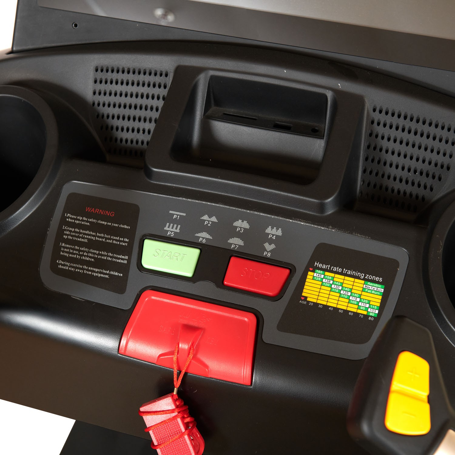 Banda de Alergare electrica Sportmann F1-8900A-TV3 este dotata cu touch screen de 19" care afiseaza viteza, inclinatia, caloriile consumate, timpul, pulsul, numarul de pasi, etc pentru a va putea monitoriza atent fiecare sesiune de alergare. Senzorii de puls de pe manere permit masurarea pulsului in timpul alergarii. Intrarea USB si jack de 3.5 va ofera posibilitatea sa ascultati muzica MP3 preferata in timp ce alergati.