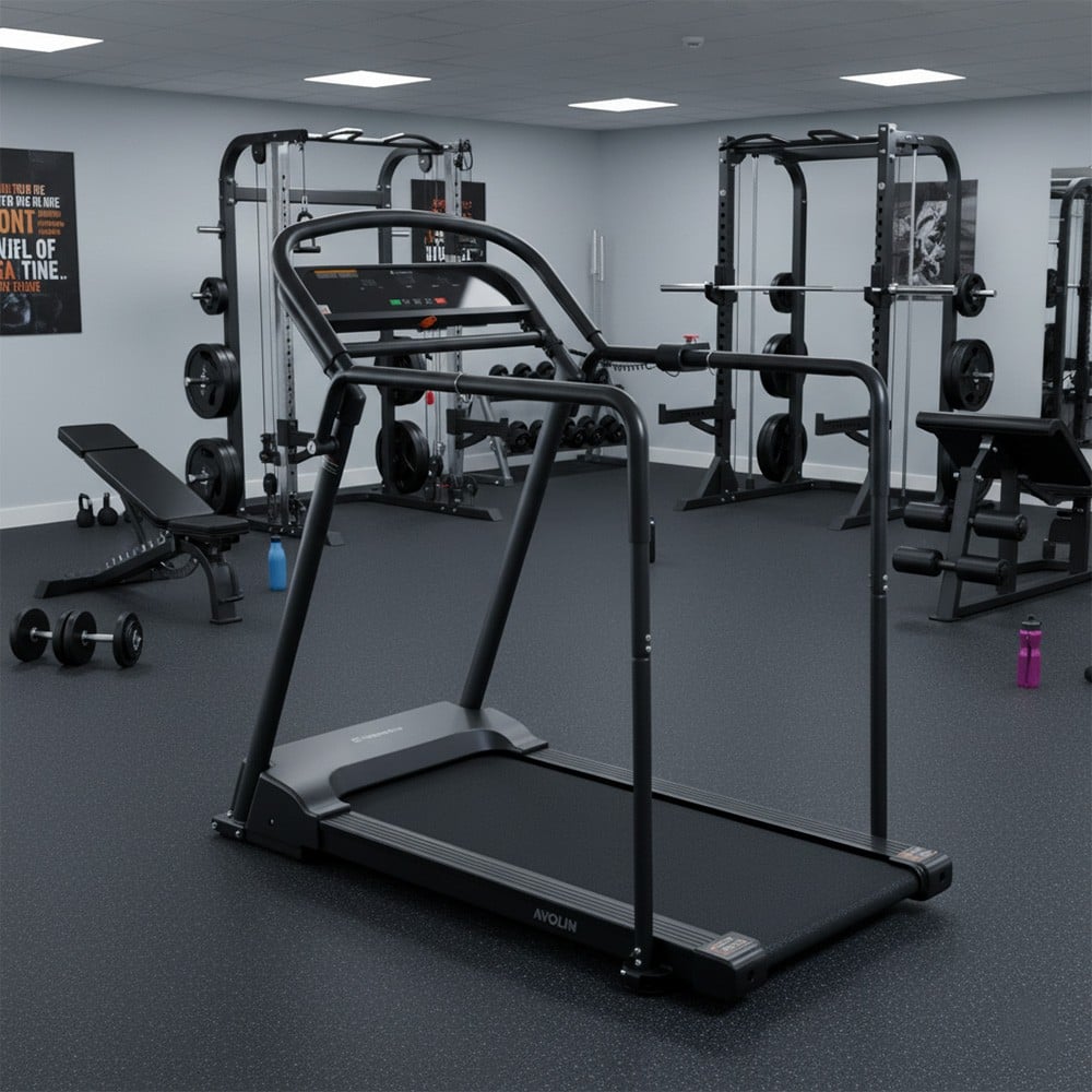 Banda inSPORTline Avolin este echipata cu un sistem dublu de siguranta – o cheie magnetica clasica pentru utilizator si un buton de oprire de urgenta amplasat pe exteriorul barelor de sprijin, care permite unui asistent sa opreasca imediat banda. Setul include si curele de siguranta, ce ajuta la mentinerea stabilitatii in timpul mersului, oferind un plus de incredere in timpul antrenamentului. Cadrul solid si barele laterale lungi garanteaza un antrenament sigur si controlat, indiferent de ritm.