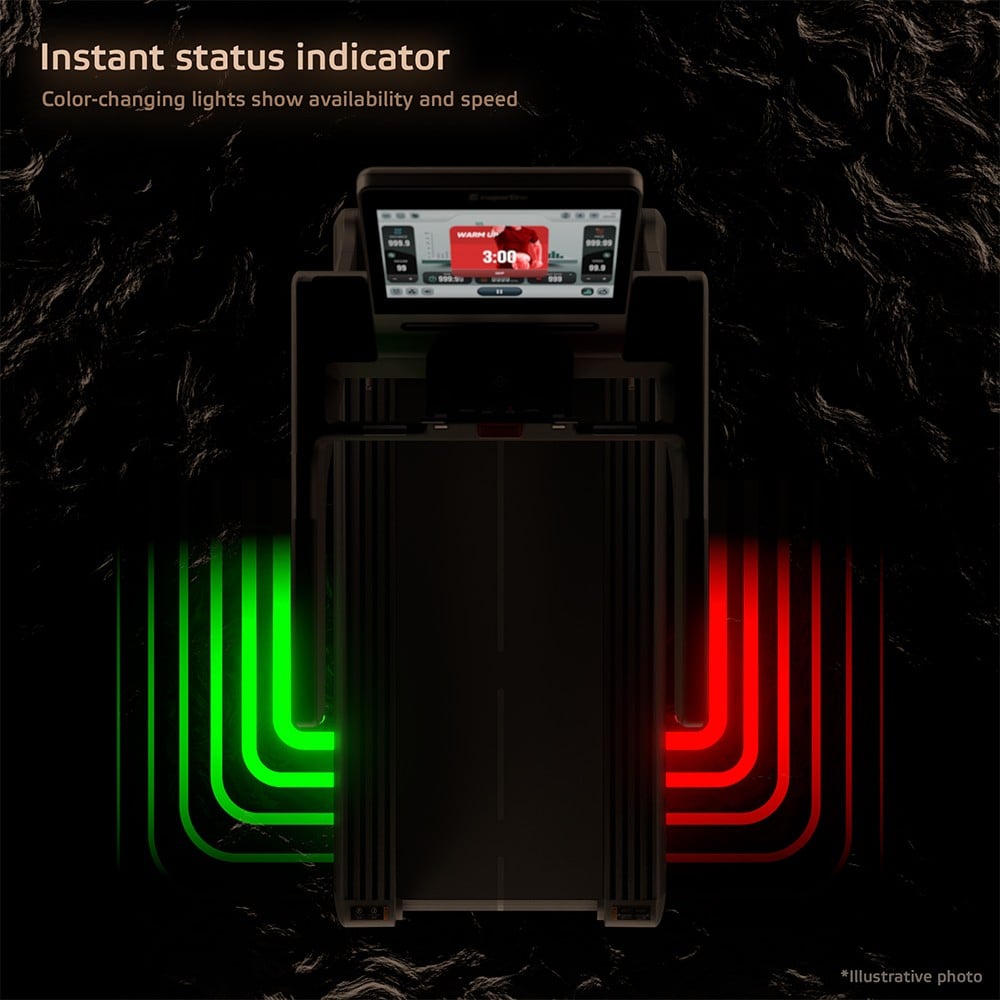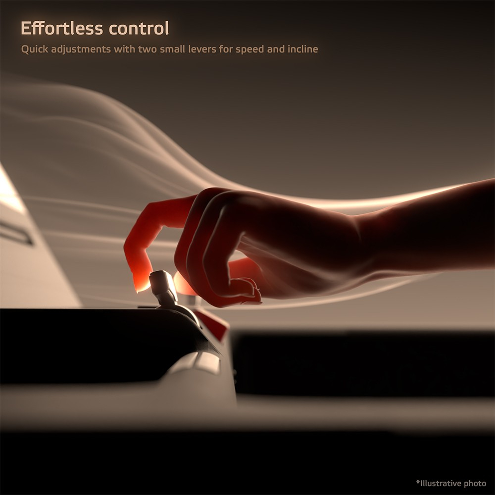 Un element deosebit este iluminarea LED a barelor de sprijin, care schimba culoarea in functie de viteza. Viteza si inclinatia pot fi, de asemenea, ajustate usor folosind manetele de pe bare. Iluminarea ofera feedback vizual instant asupra ritmului tau de alergare: