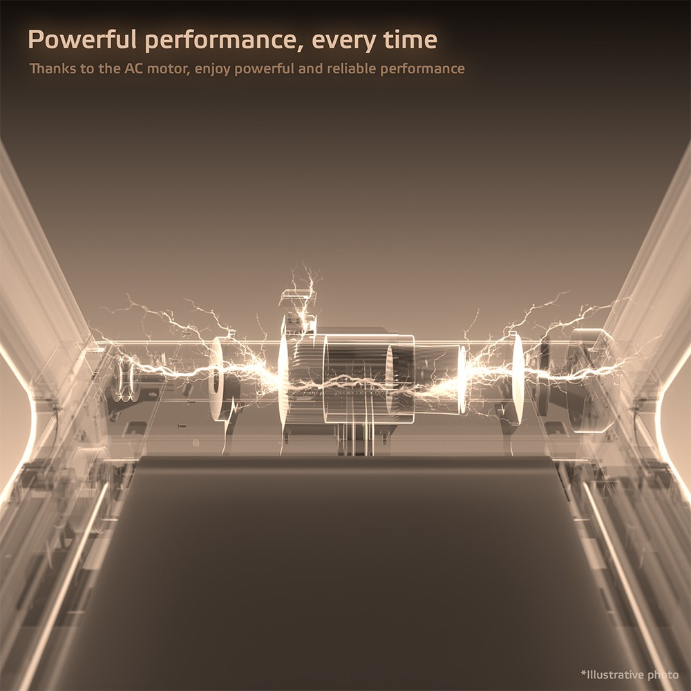 Articulatiile tale sunt protejate de amortizarea Silent Block, care absoarbe impactul si face alergarea semnificativ mai confortabila, chiar si in timpul antrenamentelor lungi. Suprafata de alergare de 160 × 60 cm ofera suficient spatiu pentru un pas natural, chiar si la viteza maxima. Iar datorita ventilatorului integrat situat sub display, vei ramane racoros chiar si in timpul celor mai intense sesiuni de antrenament.