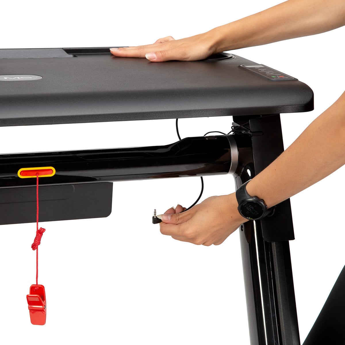 Multumita mesei, acum va fi posibila combinarea activitatii fizice cu lucrul. Conectarea mesei limiteaza viteza benzii de alergare la 6 km/h, astfel incat utilizarea unui laptop in timpul mersului nu va fi o problema. Pe masa, exista un suport pentru o sticla sau o cana de apa, exista si un suport pentru tableta. Datorita unui panou de control special, putem incetini sau opri banda de alergare in orice moment. Aceasta solutie este o alternativa excelenta pentru a nu lucra din spatele unui birou.