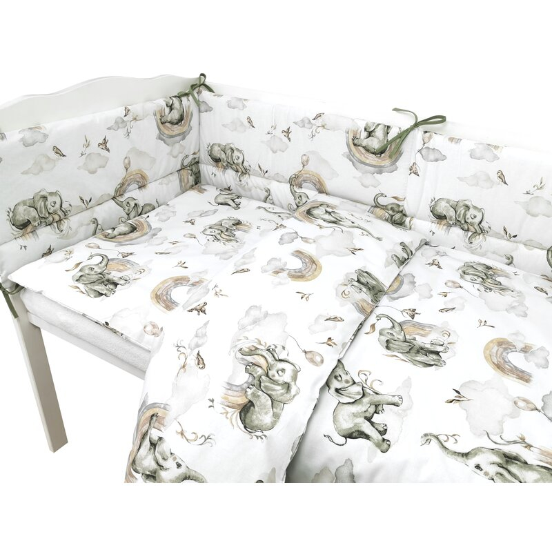 Ofera-i bebelusului tau un spatiu de odihna sigur, confortabil si plin de caldura cu setul de lenjerie Qmini - Elephants on Rainbow. Creat pentru a aduce liniste si protectie in primele luni de viata, acest set imbina estetica delicata cu materiale prietenoase cu pielea sensibila, fiind alegerea ideala pentru orice parinte modern.