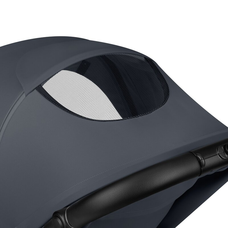 Capotina XXL ofera suficient spatiu pentru un copil. Are un panou retractabil suplimentar, o fereastra pentru un flux de aer mai bun.
