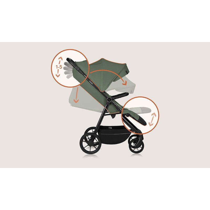 Arata impresionant, deoarece a fost creat folosind tesaturi si materiale de inalta calitate, selectate cu atentie. Manopera atenta este vizibila in detalii (de exemplu, manerul acoperit cu piele ecologica eleganta, iar catarama magnetica face fixarea curelelor mult mai rapida si mai usoara). Cu solutiile sale practice, Iva combina functionalitatea, confortul si stilul, in timp ce capacitatea de a regla suportul pentru picioare, spatarul si manerul permite caruciorului sa se potriveasca inaltimii copilului si parintelui.