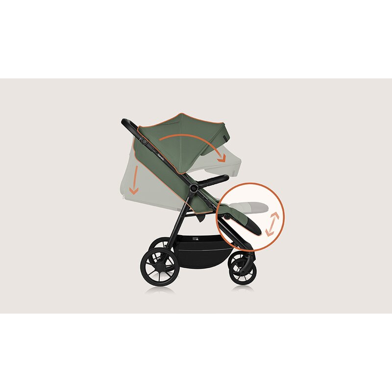 Aveti acces foarte usor la cosul mare, chiar si atunci cand spatarul este rabatat in pozitia de somn. Puteti face cumparaturi in timp ce copilul dumneavoastra doarme.