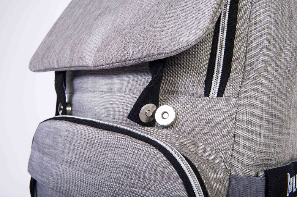 Folia PET reflectiva din compartimentul frontal pastreaza biberonul la temperatura pana la 4 h, fara pungi de gheata. Fermoarul YKK poate fi actionat cu o singura mana, esential cand tii bebelusul in brate.