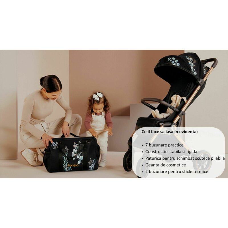 Geanta pentru mamici, Lionelo, Ida, Golden Moments, Editie limitata, cu multiple compartimente, Negru