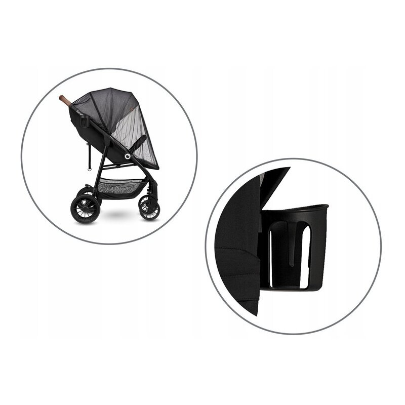 O gama larga de accesorii fac din Lionelo Zoey un produs foarte versatil. In afara de plasa de protectie contra tantarilor si suport pentru pahare, caruciorul are un cos mare pentru accesorii. Tapiteria caruciorului este fabricata dintr-un material usor de curatat, rezistent la abraziune si intindere. Zoey are o finisare eleganta din eco-piele si elemente fluorescente care imbunatatesc vizibilitatea produsului.
