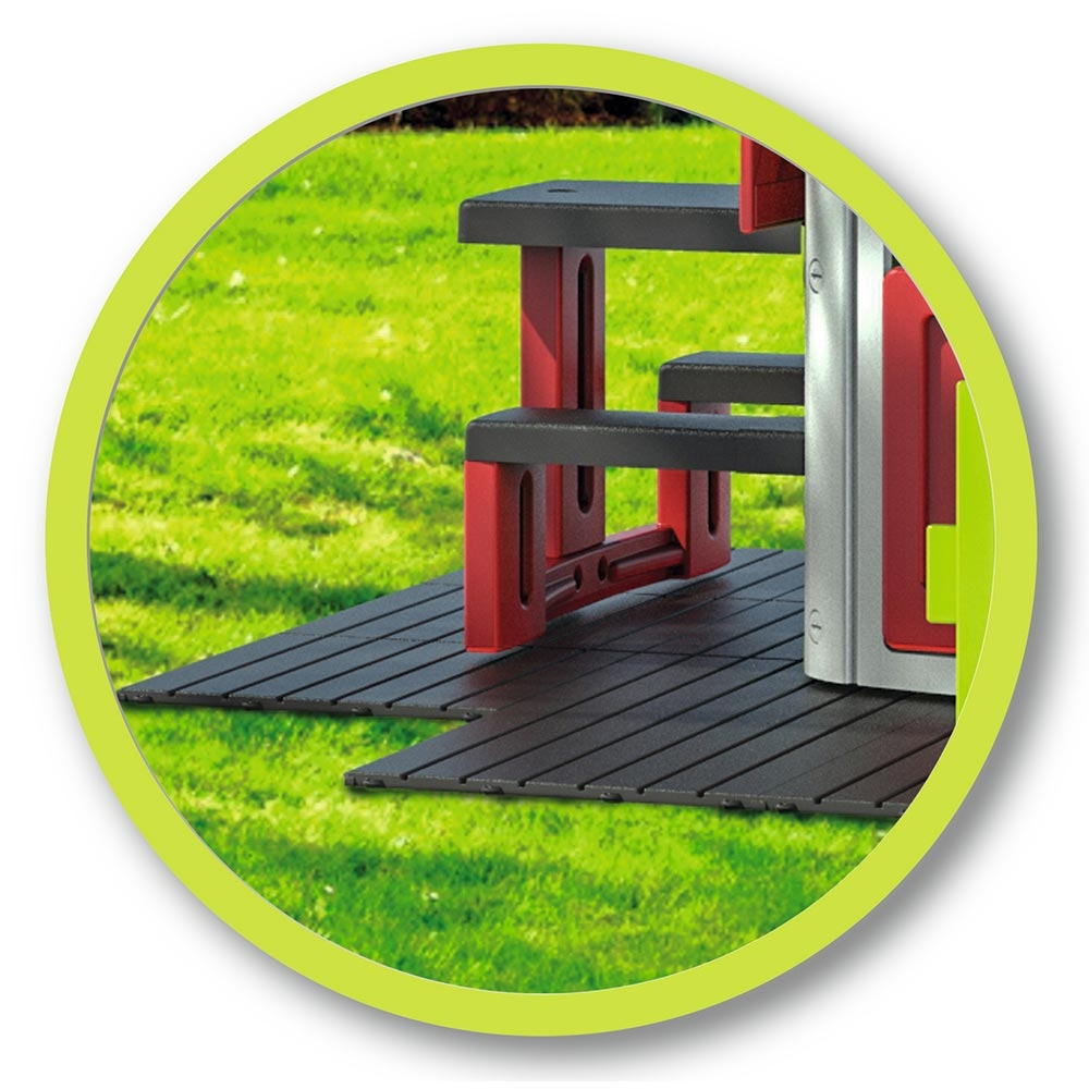 Set Smoby Podea casuta 45x45 cm compus din 6 elemente pentru a crea o podea pentru casuta. Este confectionat din plastic de calitate ridicata, rezistent la temperaturile ridicate si la razele soarelui. Elementele se conecteaza usor intre ele. Cu aspect detaliat de lemn si cu o suprafata antiderapanta. Varsta recomandata: 2 ani +