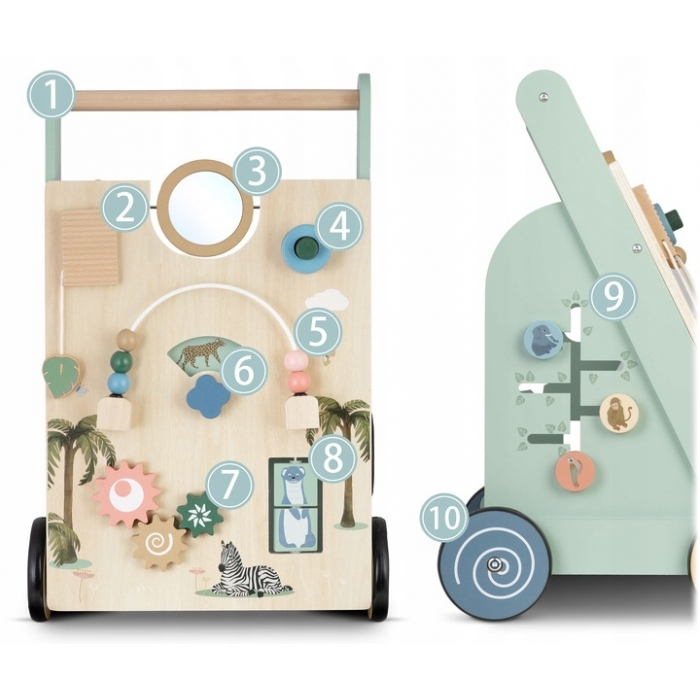 Setul include: oglinda rotativa, labirint, abac, roti dintate, 4 blocuri din lemn etc.