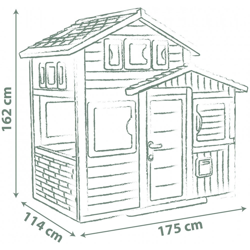 • Va puteti personaliza casuta cu accesorii Smoby, cum ar fi bucatarie de vara, masa de picnic, colector de apa, sonerie si alte accesorii compatibile