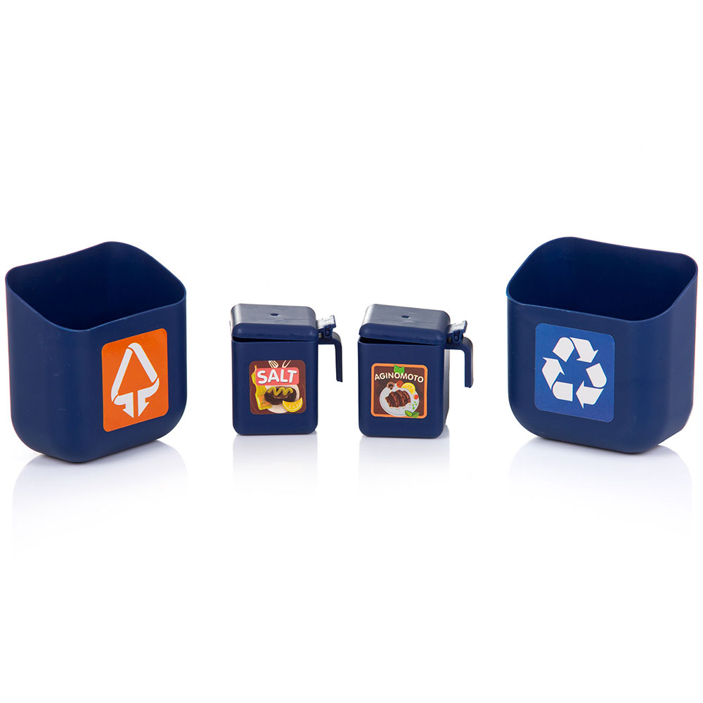 - O varietate de 113 de accesorii colorate si realiste - in forma de diferite tipuri de produse alimentare (legume, fructe, cutii de suc, gustari, inghetata, etc.), precum si o gama larga de accesorii de bucatarie (tigaie, farfurii, cratita, cani, sticle de sos, ibric, ulcioare si vase de diferite dimensiuni, etc.), set de ustensile de gatit, cosuri de gunoi, etc.