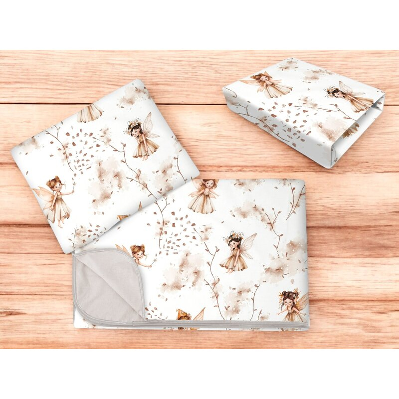 MimiNu Lenjerie patut cu 3 piese, MimiNu, cu cearceaf 120x60 cm, din bumbac, cu paturica si pernuta, Fairy