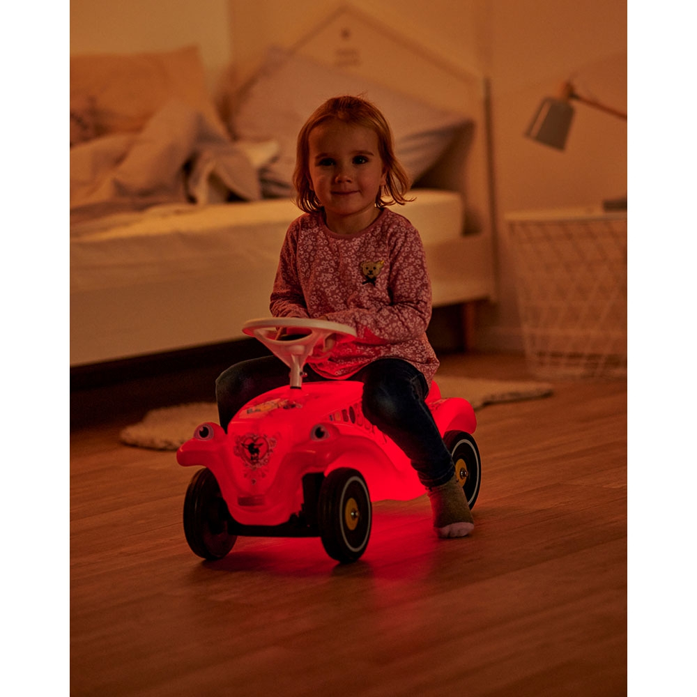 Masina Bobby este partenerul ideal atat pe timp de zi, cat si noaptea, datorita noului design cu LED-uri.. Functia de iluminare a partii inferioare a masinutei se utilizeaza in 4 moduri