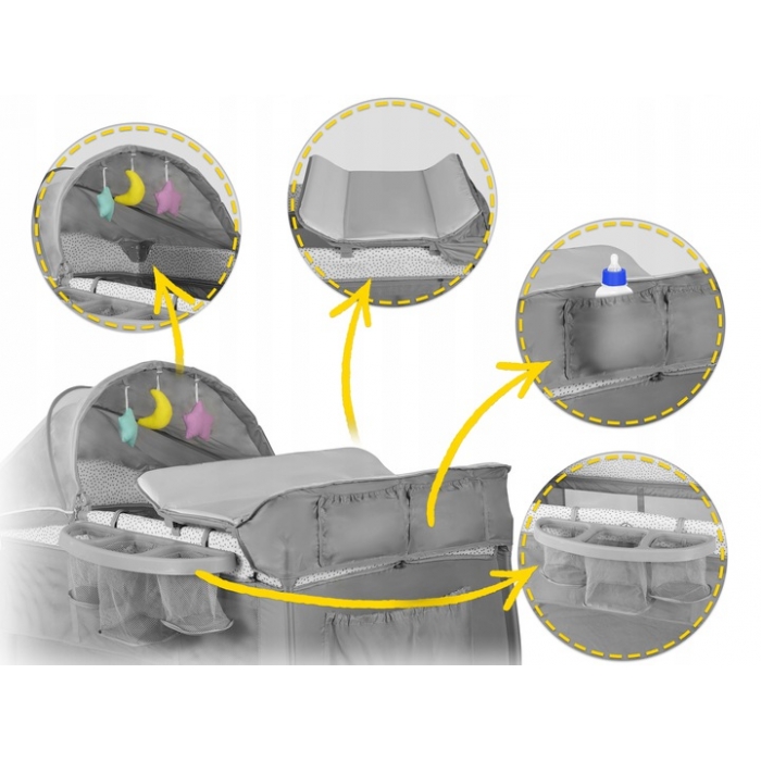 Un patut pliabil va fi util in timpul calatoriilor, precum si utilizarea de zi cu zi. Detaliile rafinate, fara margini ascutite, fac copilul sa se simta in siguranta.