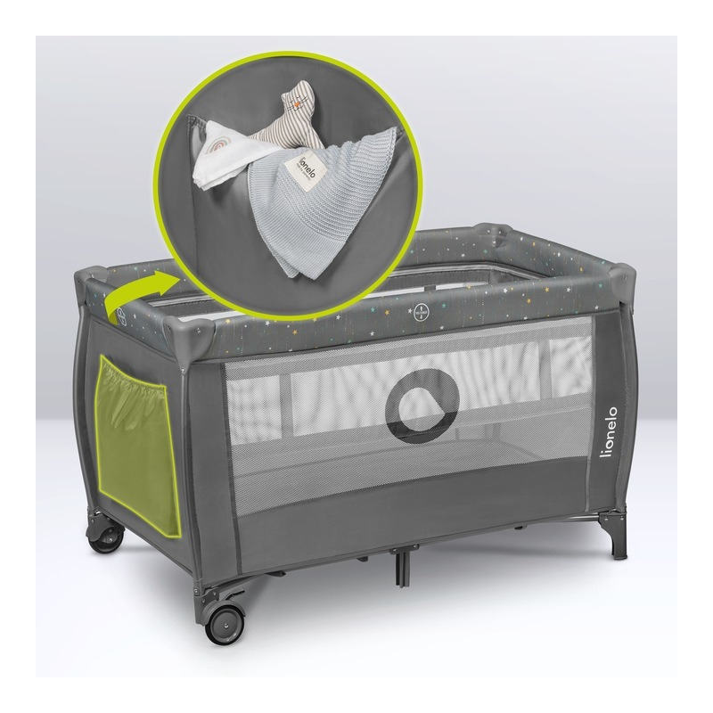 In patutul de calatorie Lionelo Stefi Plus , copilul va gasi spatiu pentru a se odihni si a se juca fara grija. Cadrul patutului a fost construit in asa fel incat copilul sa fie in siguranta chiar si atunci cand invata sa se ridice. Tuburile sunt pe exterior si capacul pe interior. Chiar si atunci cand un copil cade peste cap, acesta nu este expus elementelor dure. De aceea, nu va mai fi nevoie de protectii suplimentare.