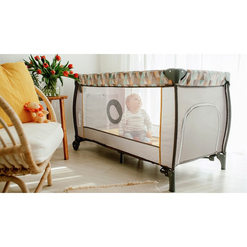 Patutul de calatorie Lionelo Sven Plus are un cadru durabil, stabil, pliabil, care este echipat cu sistemul LockGuard. Este conceput pentru a proteja impotriva plierii accidentale a structurii. Marginile rotunjite permit utilizarea fara griji. Peretii produsului sunt realizati din plasa respirabila, care asigura o buna ventilatie si permite observarea continua a copilului mic, fara a fi nevoie sa se desprinda de indatoriri. Patutul nostru a fost testat de SGS, care a confirmat conformitatea cu standardele EN 716 si EN 12221.