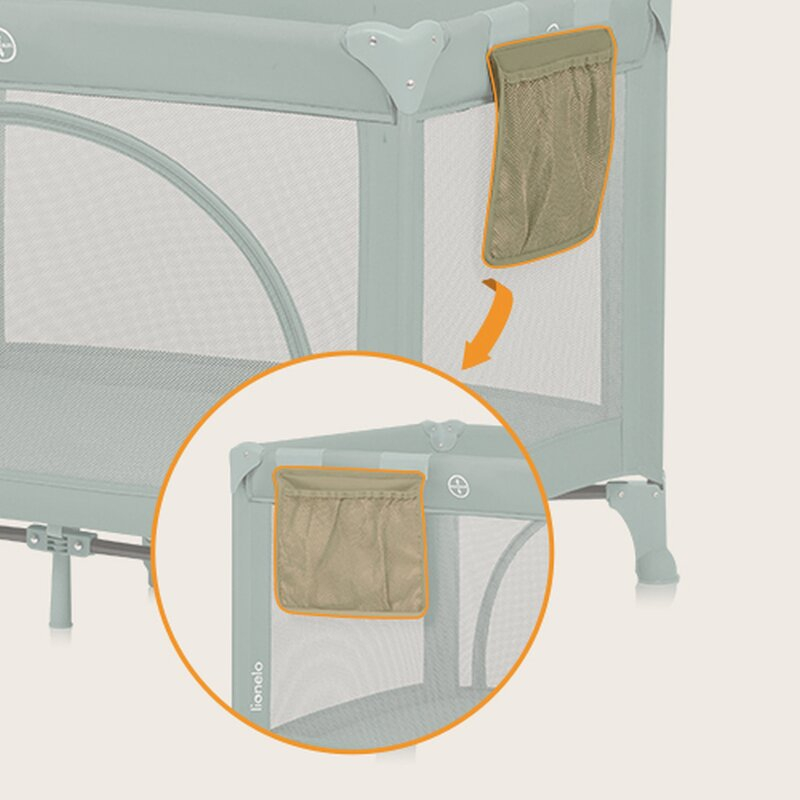 Poate fi folosit pentru jucarii sau accesorii si se monteaza pe orice parte a patului, adaptandu-se perfect spatiului disponibil.