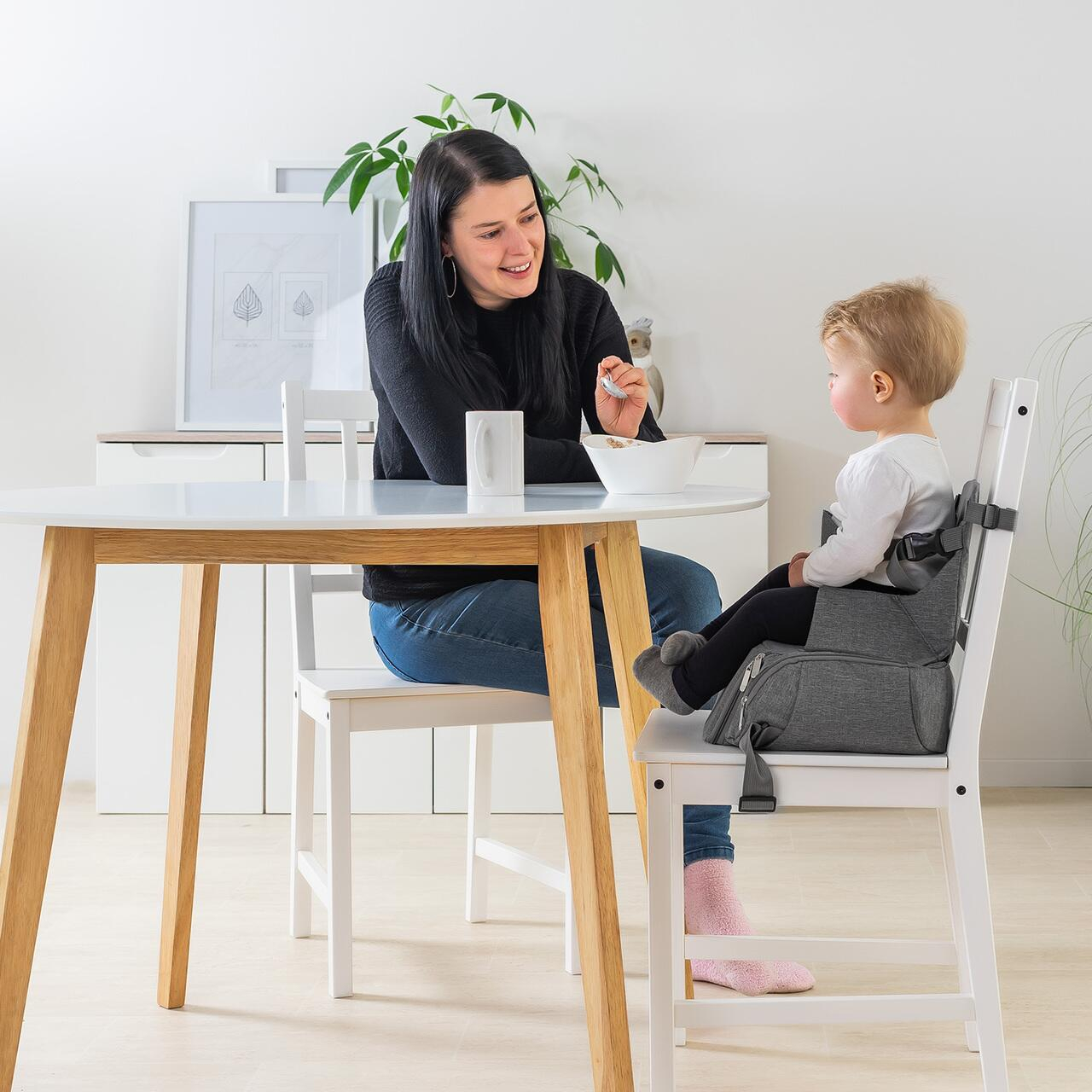 Inaltatorul de scaun pentru bebelusi poate fi pliat si transportat exact ca o geanta, indiferent daca iesiti in oras sau sunteti in vizita