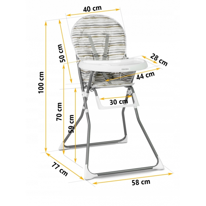 Scaun de masa Ricokids Fando cu tava profilata si usor de curatat - cu margini ridicate, loc desemnat pentru o ceasca; Suport pentru picioare reglabil; Centuri de siguranta in 5 puncte; Picioare antiderapante;