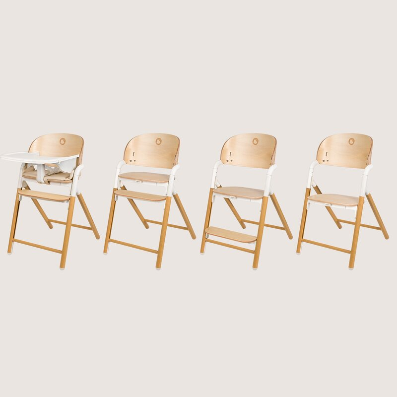 Scaun de masa multifunctional Celia, Lionelo, din lemn de fag, 6 luni- adult, Spatar lat, Sezut ergonomic, Tavita silicon, Suport de picioare reglabil, Greutate maxima 90 Kg, Alb/Natural