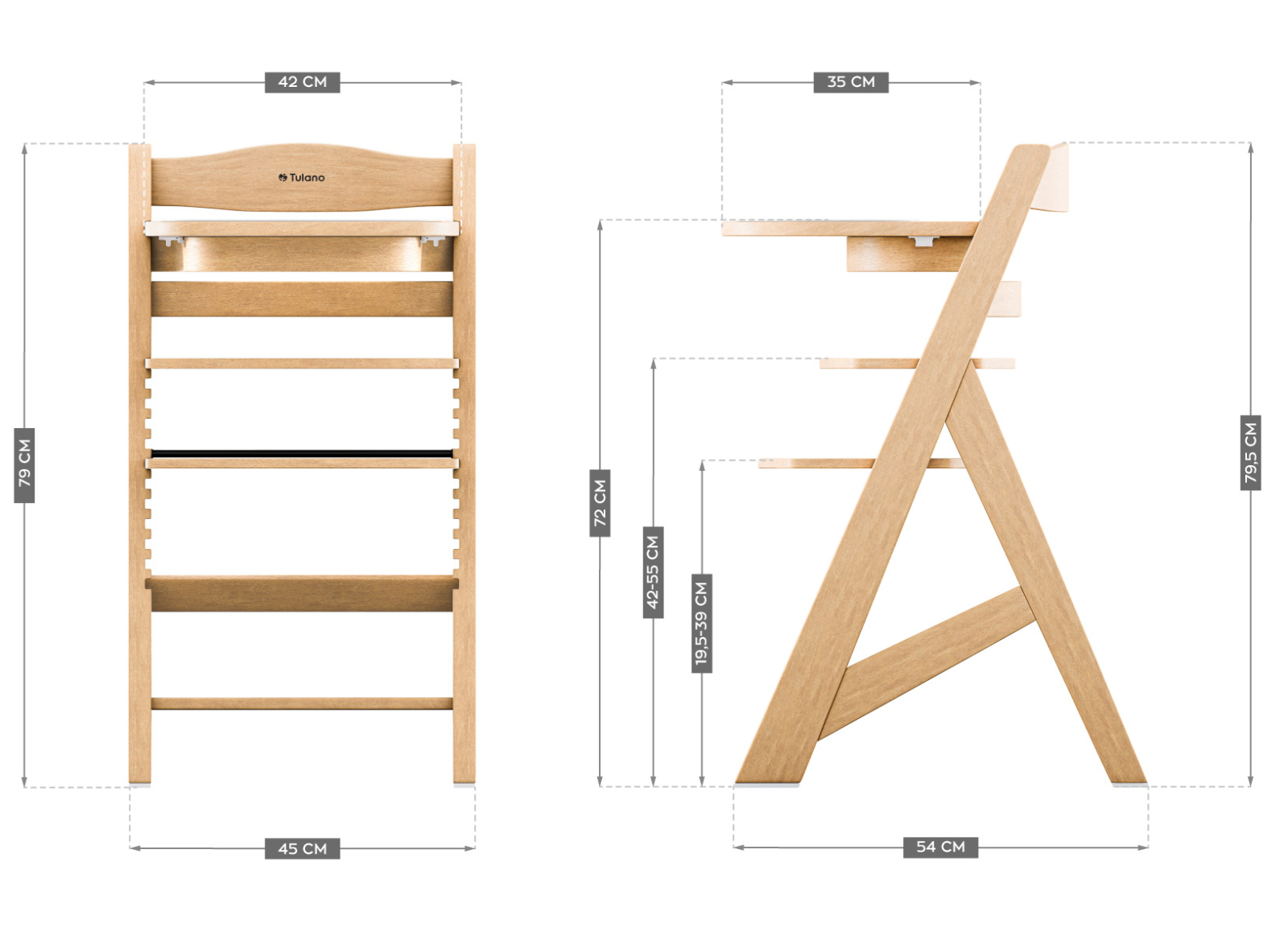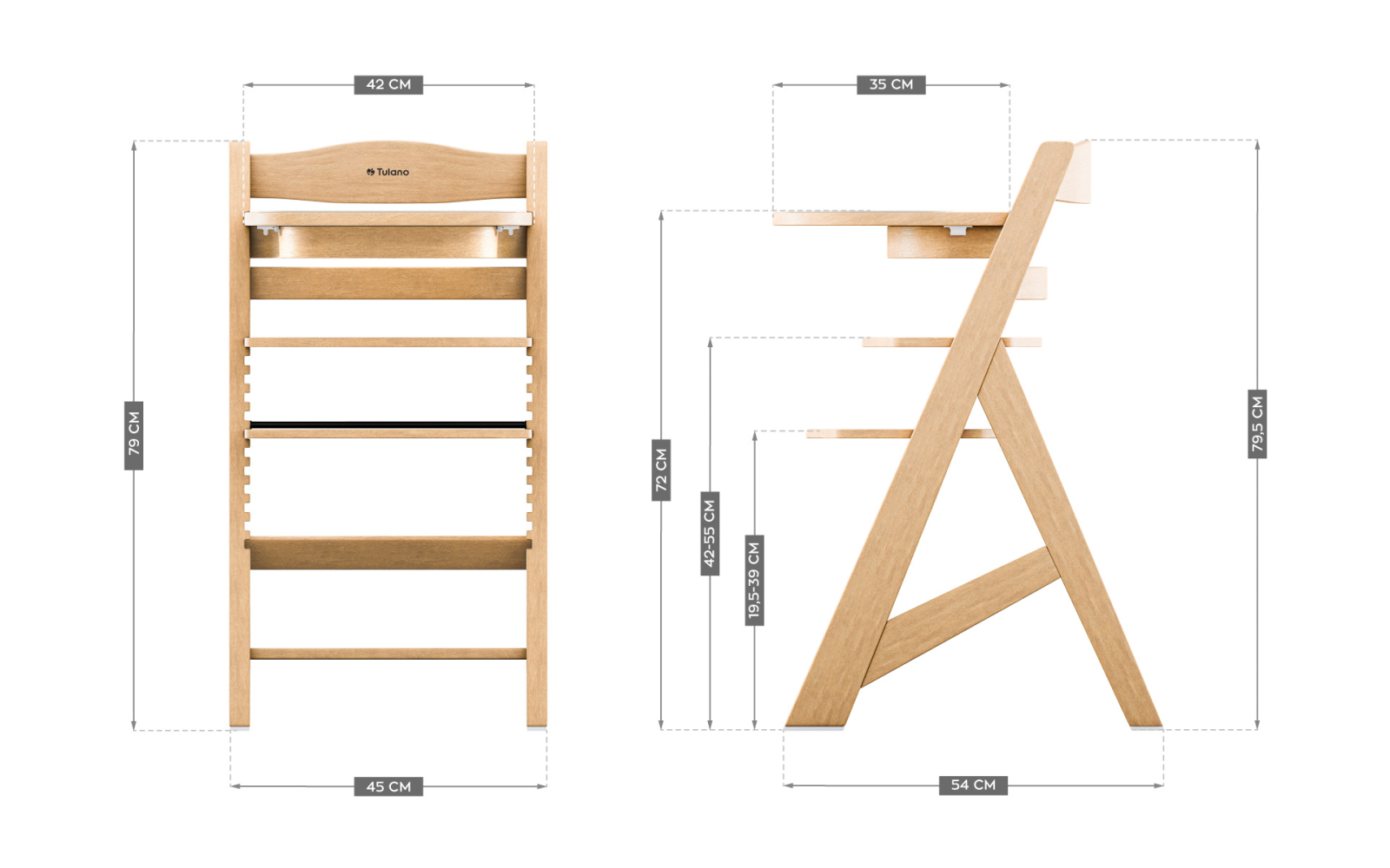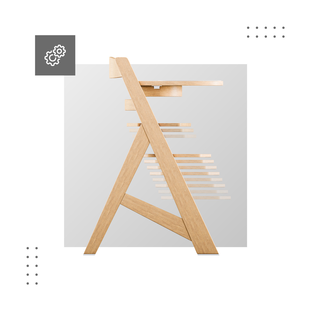 Tavita functionala si detasabila: usor de curatat manual sau in masina de spalat vase. Functionalitatea scaunului de hranire este crescuta de o tavita detasabila cu un capac din plastic. Aceasta solutie este igienica si previne decolorarea care poate aparea pe tavitele din lemn. Marginile ridicate ale tavitei impiedica caderea mancarii. Capac din plastic este extrem de usor de curatat - poti indeparta murdaria minora cu un burete umed, iar dupa masa, pur si simplu il indepartezi pentru a-l spala in masina de spalat vase sau sub apa curgatoare.