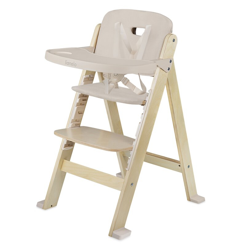 Scaun de masa, Lionelo, Floris, 3 in 1, din Lemn, Transformabil, Reglabil pe inaltime in 4 pozitii, Suport picioare- 4 pozitii, 6 luni- 12 ani, Sustine 40 kg, Bej