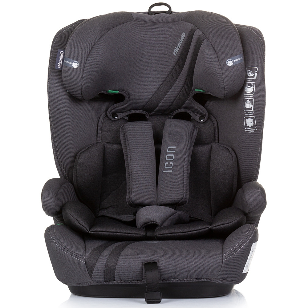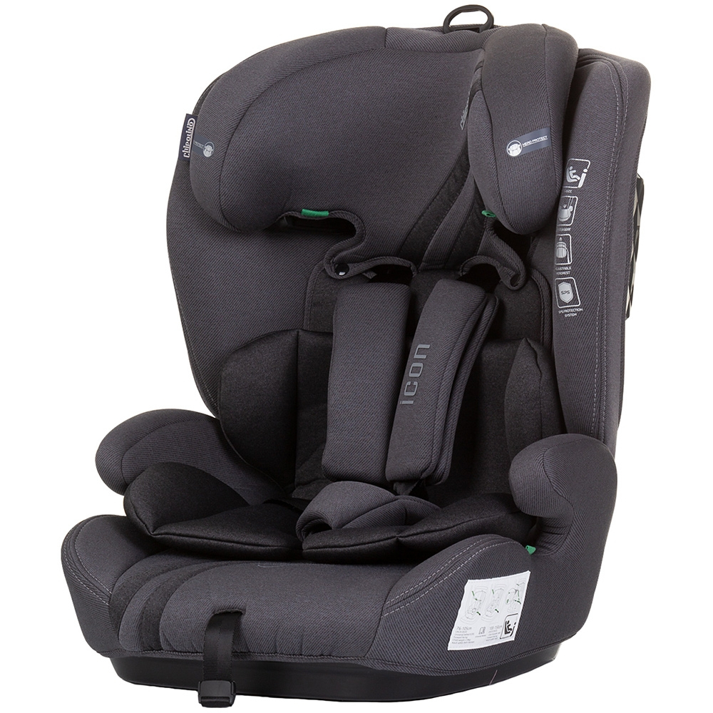 Scaun auto Chipolino Icon I-Size 76-150 cm cu centura de siguranta reglabila pe lungime, cu sistem de prindere in 5 puncte, cu bureti pentru umeri. Perna moale suplimentara pentru a sustine corpul copilului. Tetiera reglabila pe inaltime.