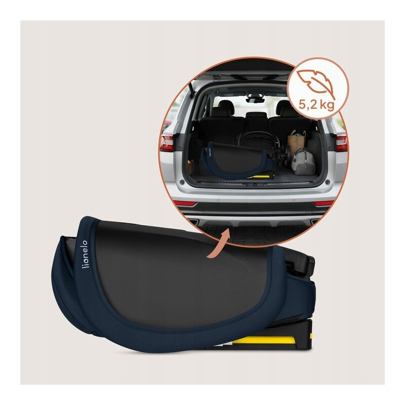 Lionelo Scaun auto pliabil, Lionelo, Orin, i-Size, 100-150 cm, Tetiera reglabila in 14 pozitii, Spatar in 4 pozitii, Isofix+Top Tether, Sezut ergonomic, Husa transport, Suport sticla, Albastru