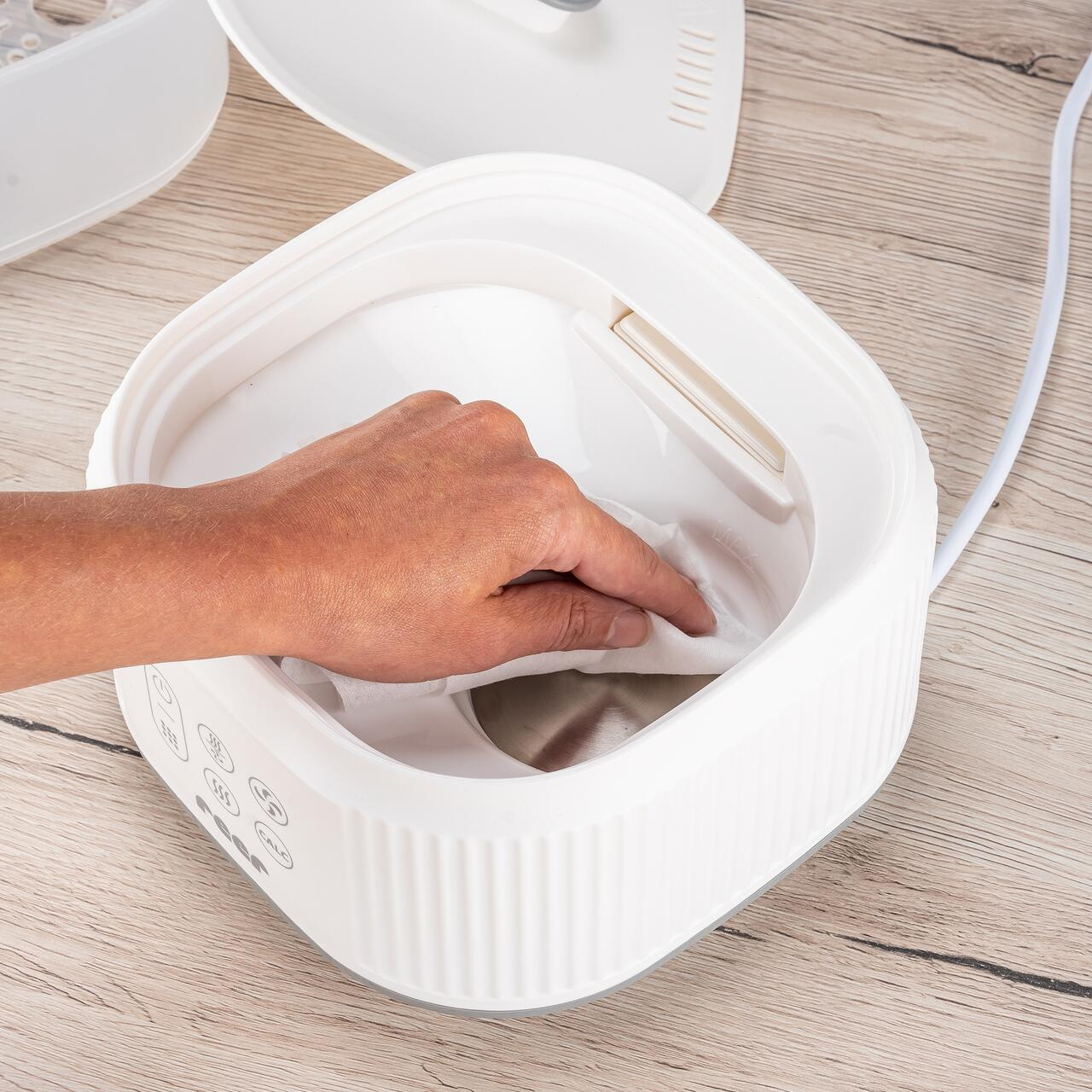 VapoDryS permite dezinfectarea rapida, simpla si sigura a biberoanelor si accesoriilor in doar 10 minute. Datorita vaporilor de apa la o temperatura de peste 90°C, 99.9% toate bacteriile si germenii daunatori sunt eliminati in mod eficient. Sterilizarea cu vapori de apa, fara adaugarea de substante chimice, este deosebit de delicata cu materialele. Datorita functiei de uscare integrata de 30 de minute, biberoanele sunt imediat gata de utilizare. In plus, uscarea imediata previne formarea din nou a germenilor din cauza apei si a depunerilor de calcar in timpul uscarii lente sau a utilizarii unui prosop. Cand capacul este inchis, continutul ramane igienizat timp de cel putin 3 ore.