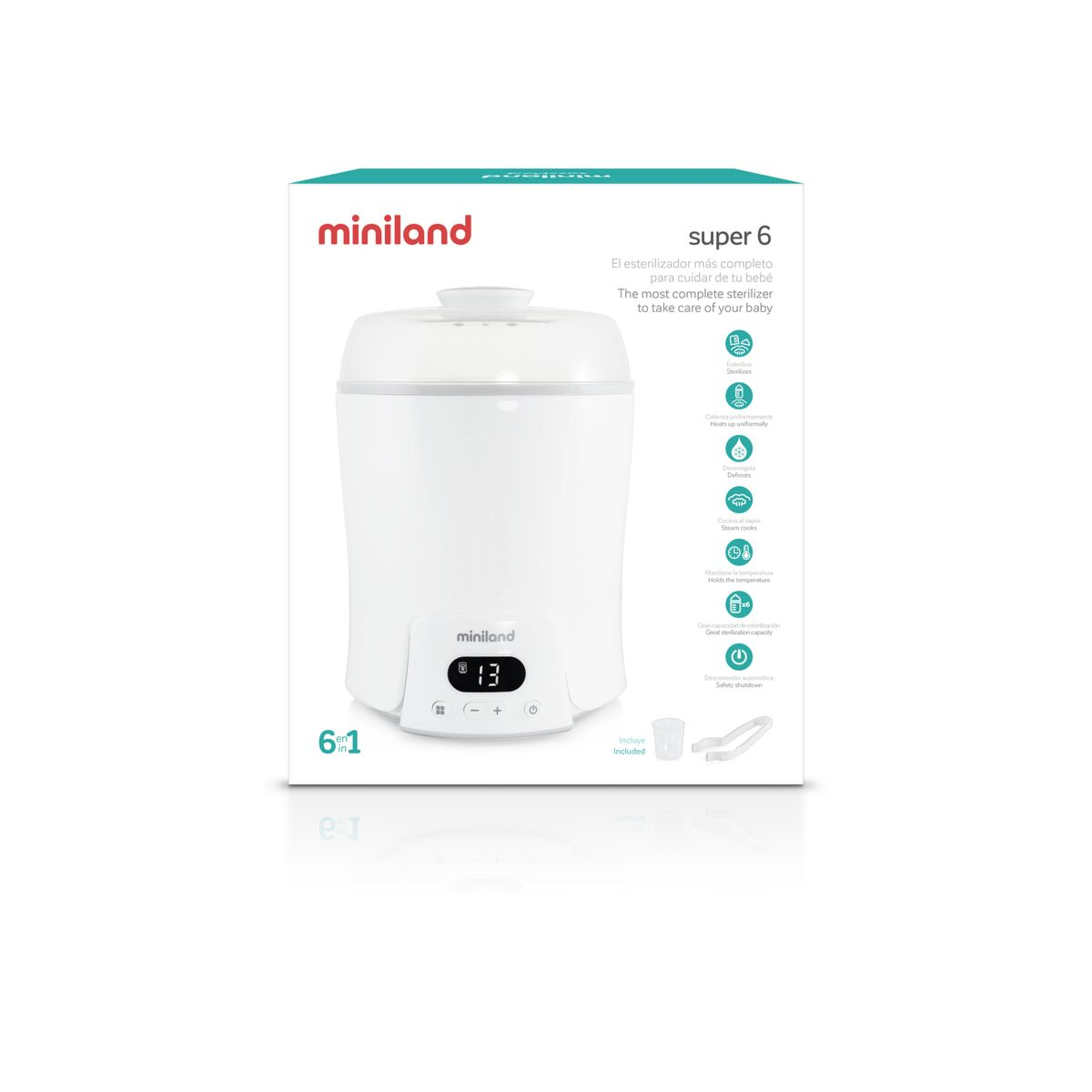 Sterilizeaza pana la 6 biberoane , tetinele aferente, in acelasi timp. Pentru eficienta sporita, include separator pentru biberoane si capac inchis ermetic.
