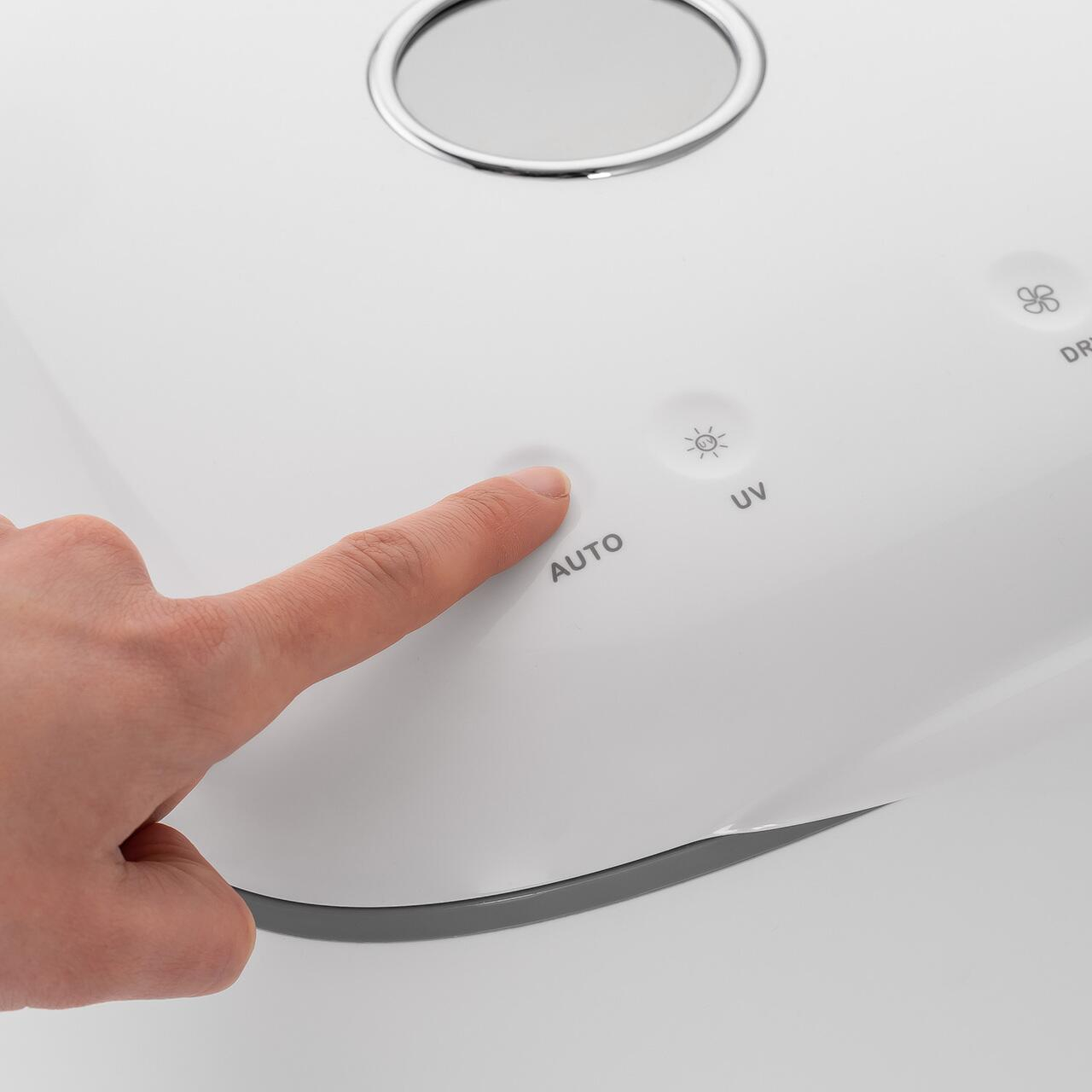 Aparatul de sterilizare UV-C are 3 programe diferite: uscare, dezinfectare sau ambele in combinatie (mod automat). Pentru o operare deosebit de usoara, toate cele 3 programe pot fi selectate direct folosind simbolurile intuitive la atingerea unui buton. Pe parcursul intregului proces, modul selectat, timpul ramas si temperatura interioara sunt afisate pe ecran. Dupa modul automat sau modul de dezinfectie, modul de stocare porneste automat.