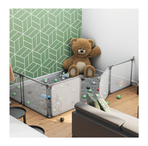 Deschidere convenabila: datorita designului bine gandit, fiecare panou poate fi folosit ca usa. Deschiderea convenabila cu un buton face ca intrarea si iesirea sa fie usoare, impiedicand in acelasi timp copiii sa deschida tarcul.