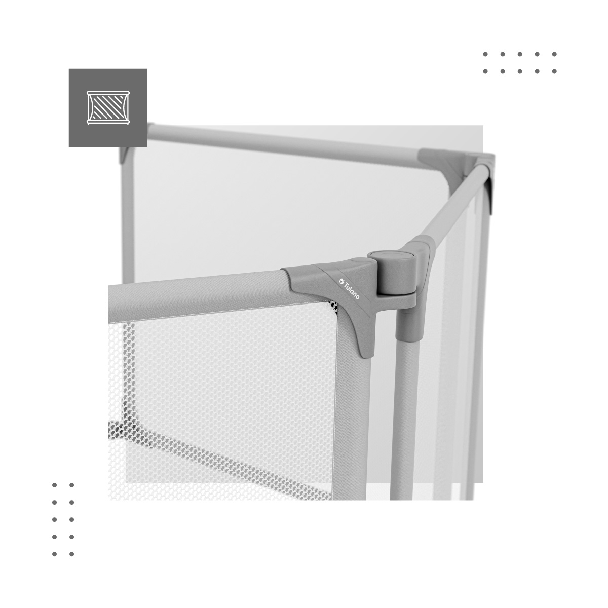 Poate fi montat pe perete: optiunea unica de montare pe perete face tarcul perfect pentru camere mici. Acest lucru iti permite sa folosesti la maximum spatiul din casa, oferind in acelasi timp copilului tau un spatiu de joaca confortabil.