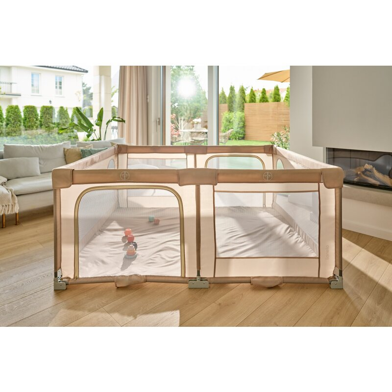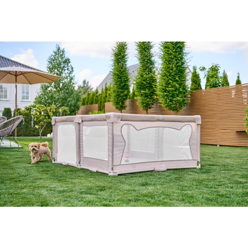 Acest tarc nu este doar pentru locuit acasa, ci si pentru joaca in aer liber . Il poti instala pe terasa, in gradina sau il poti lua cu tine intr-o excursie. Dimensiunile sale compacte si geanta functionala de transport il fac usor de impachetat pentru calatorii.