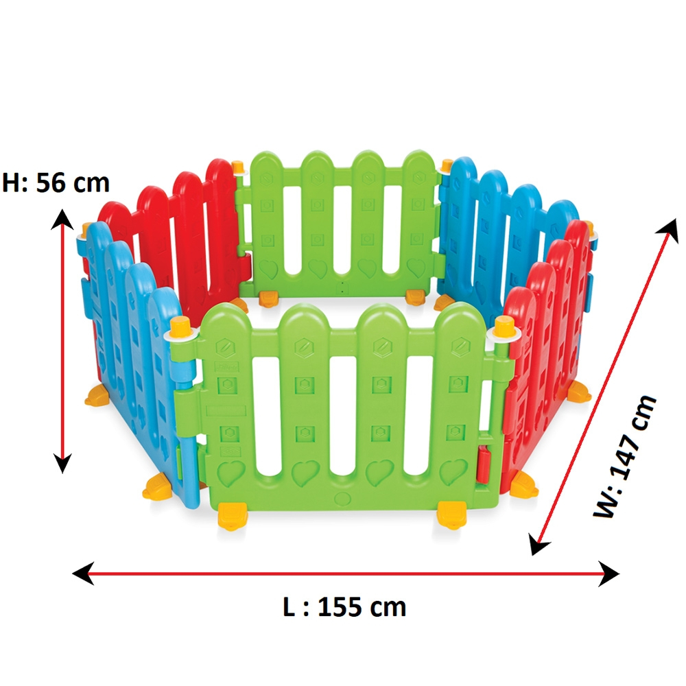 Tarc de joaca pentru copii Pilsan Playgroun Fence cu 6 bucati gard care se pot monta astfel incat sa se obtina diferite forme. Se poate utiliza ca tarc de joaca. Se poate utiliza ca spatiu cu bile de joaca. Poate fi folosit ca separator pentru spatiile din locuinta.