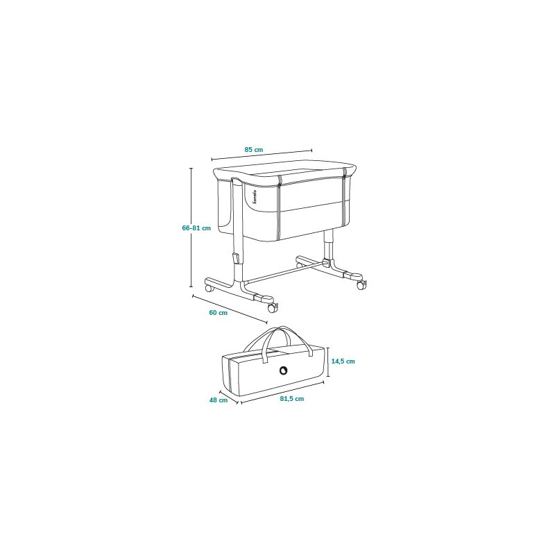 Patut co-sleeper Lionelo Aurora 3 in 1 cu leganare si setare unghiulara cu saltea cu densitate T25 si geanta transport