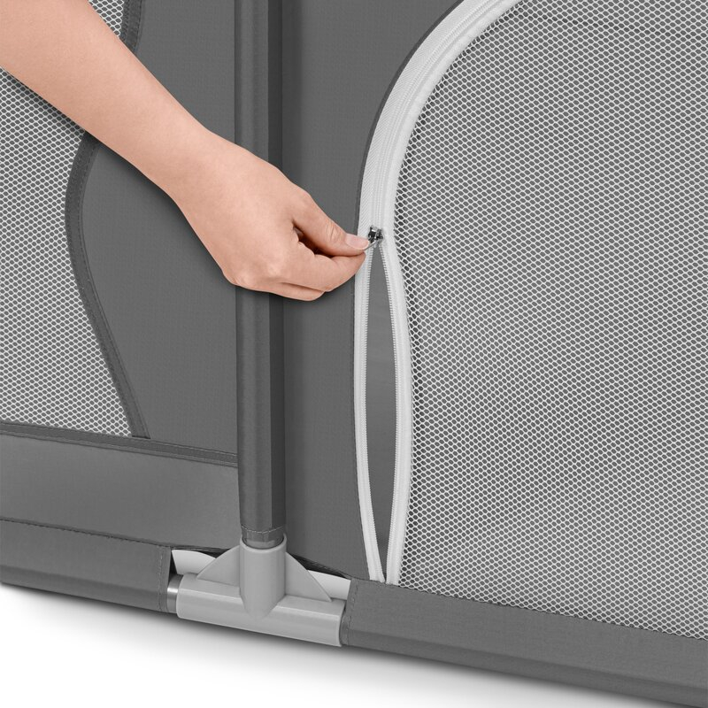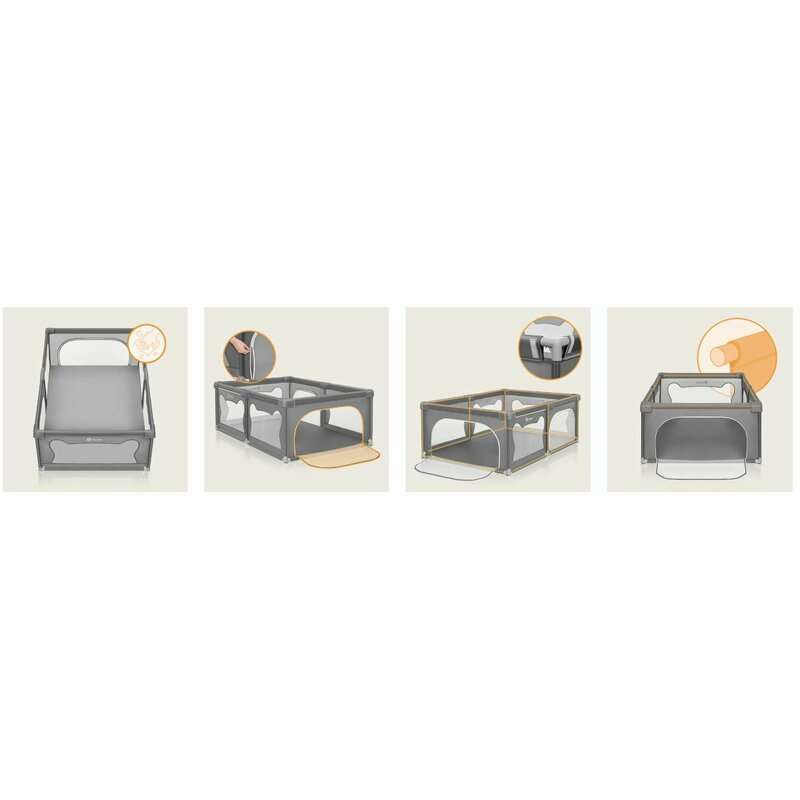 Datorita spatiului de joaca separat, parintele poate indeplini alte sarcini in timp ce copilul se afla intr-un loc sigur. Cele doua intrari laterale cu fermoar permit controlul deplin al spatiului - fermoarul este la exterior, astfel incat numai parintele poate decide sa le deschida. Produsul poate fi desfacut si pliat fara utilizarea uneltelor, iar dimensiunea compacta si geanta inclusa faciliteaza depozitarea. Materialul tarcului de joaca este usor de curatat, astfel incat produsul va dura multi ani.